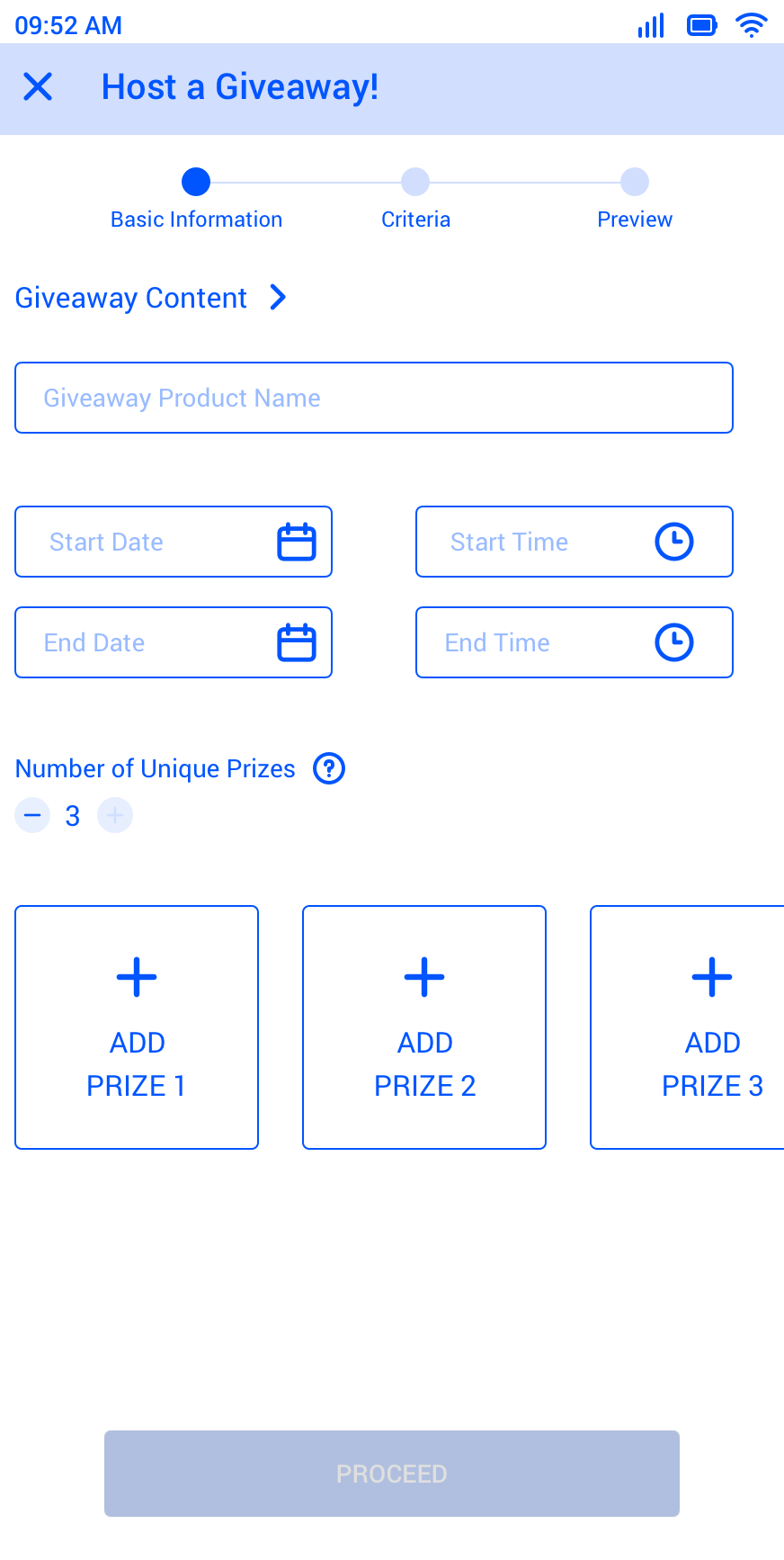 4) Participants can only enter giveaways and complete criteria once they are live. This weeds out the problem of having to hash through participants who did not complete criterion during later stages.