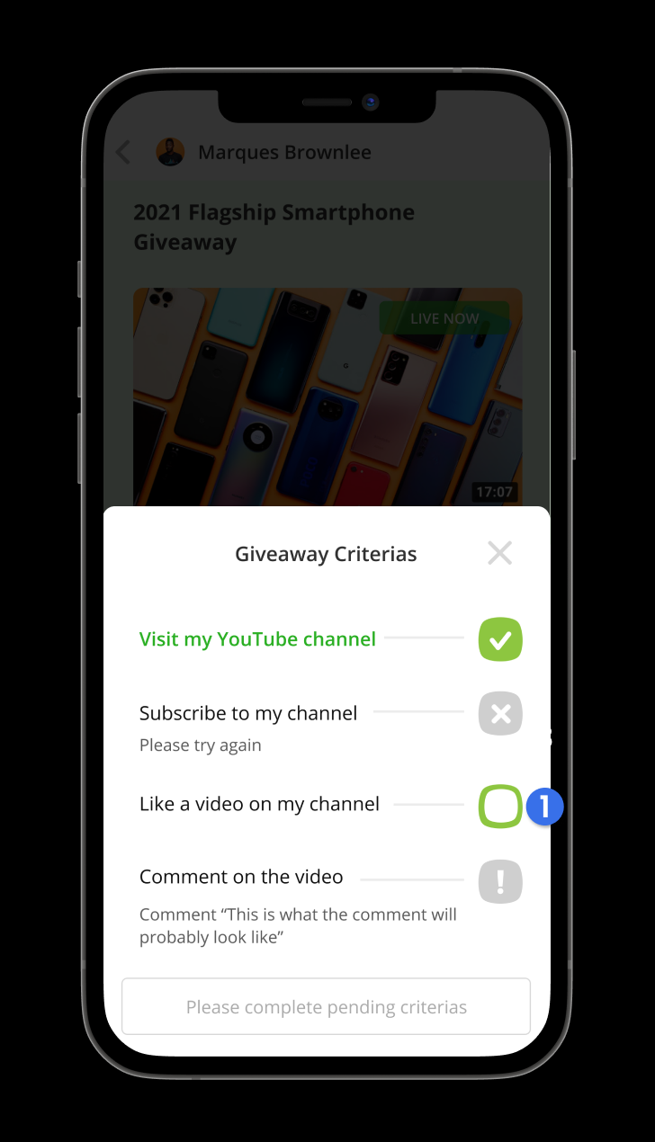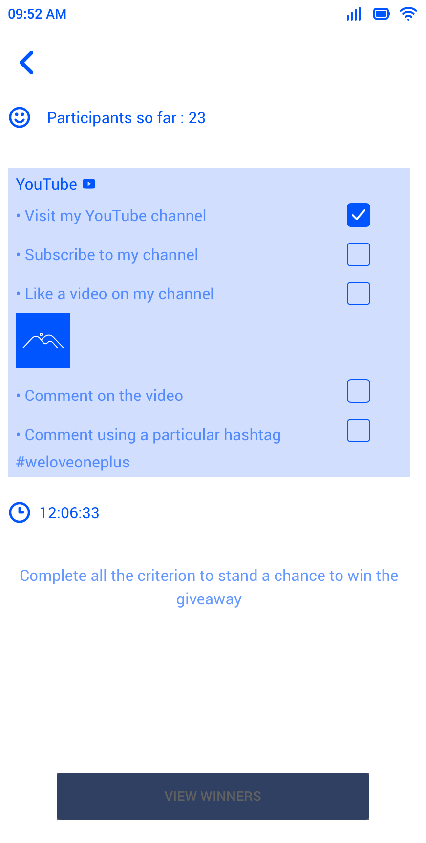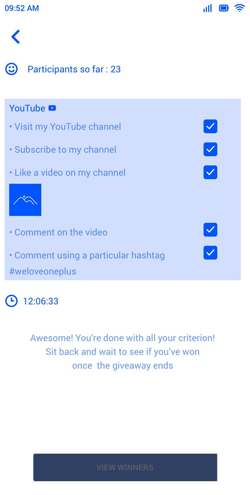 1) A majority of giveaway hosting applications allow participants to enrol despite failing to complete all the criterion. We nipped this problem in the bud by actively checking completion statuses and only allowing participants to participate once they fulfilled all the criteria.