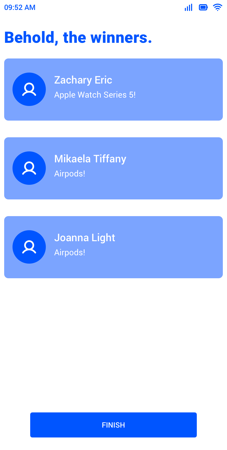 5) Participants may view all the winners and a list of other participants. This transparency ensures that the competitions are not rigged.
