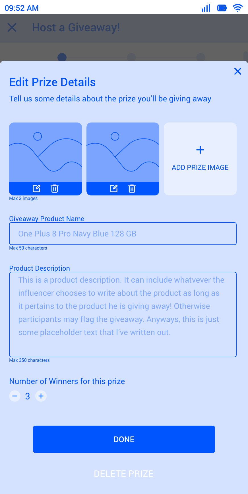 3) Explicit giveaway descriptions are mandatory by the host so participants know that they are genuine.