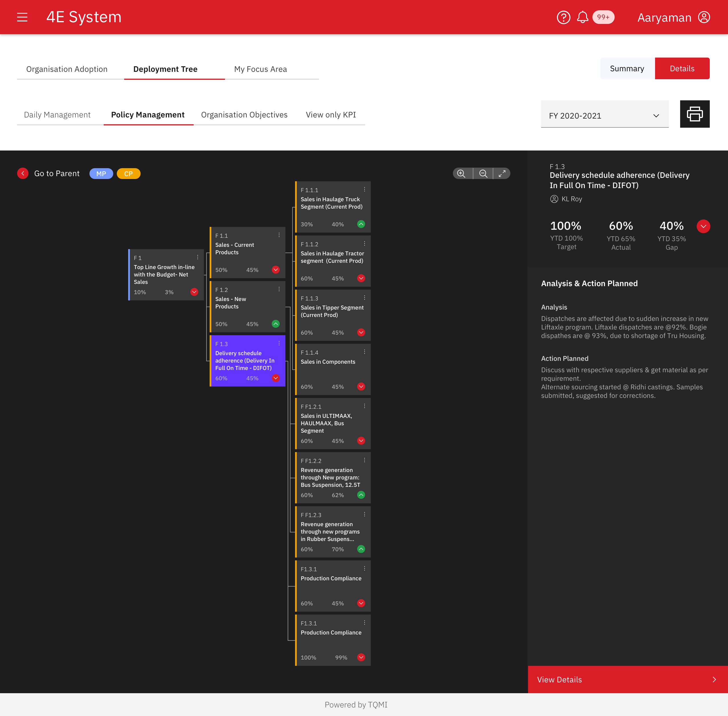 Simultaneously tracking organisational goals whilst managing business objectives and employees productivity is no easy feat. A meticulous system needs to be put into place and due diligence needs to be followed to achieve the same. Whether it's eliminating mura, mudi, muda or abiding by the PDCA methodology, 4E greatly enhances the organisational performance by housing features that tackle these issues across different manufacturing sectors. Whether you are an organisation in the chemical industry seeking to maintain the FRC in cooling towers or an automobile giant looking to reduce assembler repetitive lapses in transmission assemblies, 4E can and will help you realise your organisational goals.