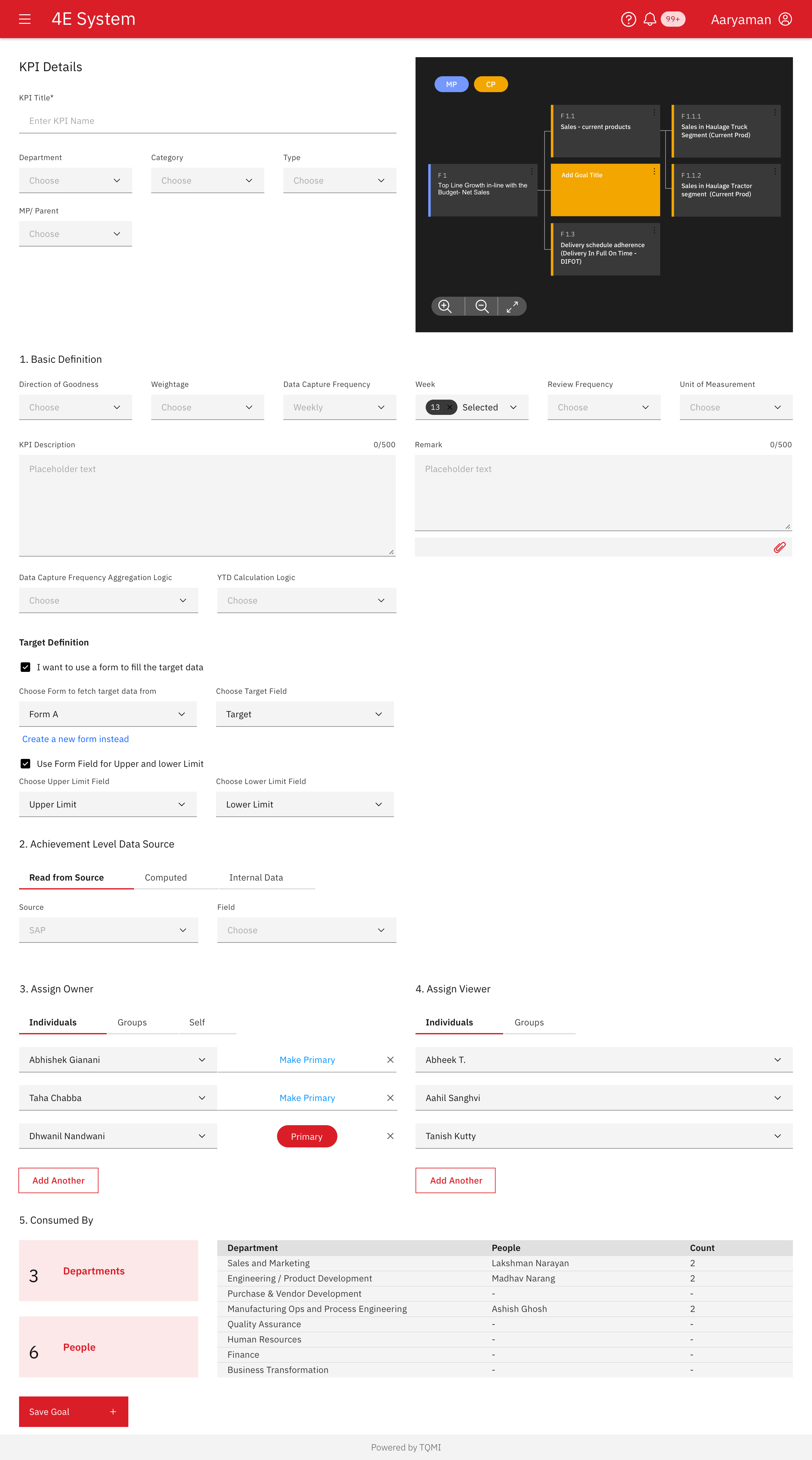 • Future consumption of KPI with respect to people and departments allows users to gauge beforehand, the extent of percolation and possible ramifications to business outcomes.