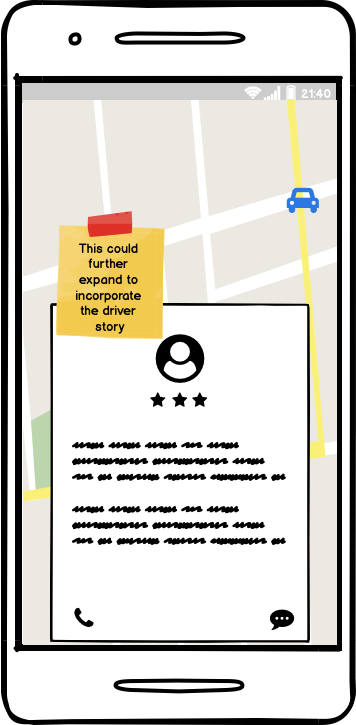 1) Idleness Aversion 101! Stepping this concept up a notch, we allow the rider to interact with the drivers profile even before the ride begins, as opposed to merely viewing the pickup time.