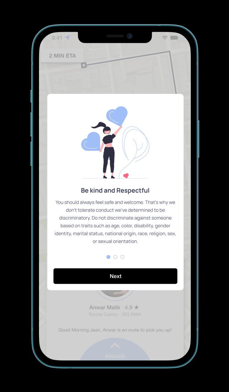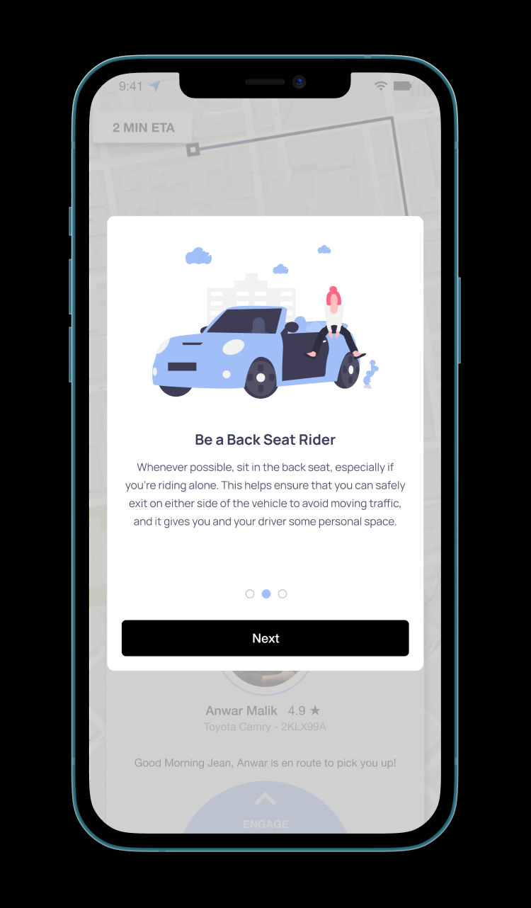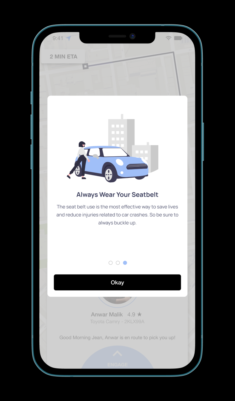 Informative modals before every ride remind the rider of rules to adhere to during the duration of the ride. Thus, reinforcing Uber’s core values and safety norms.