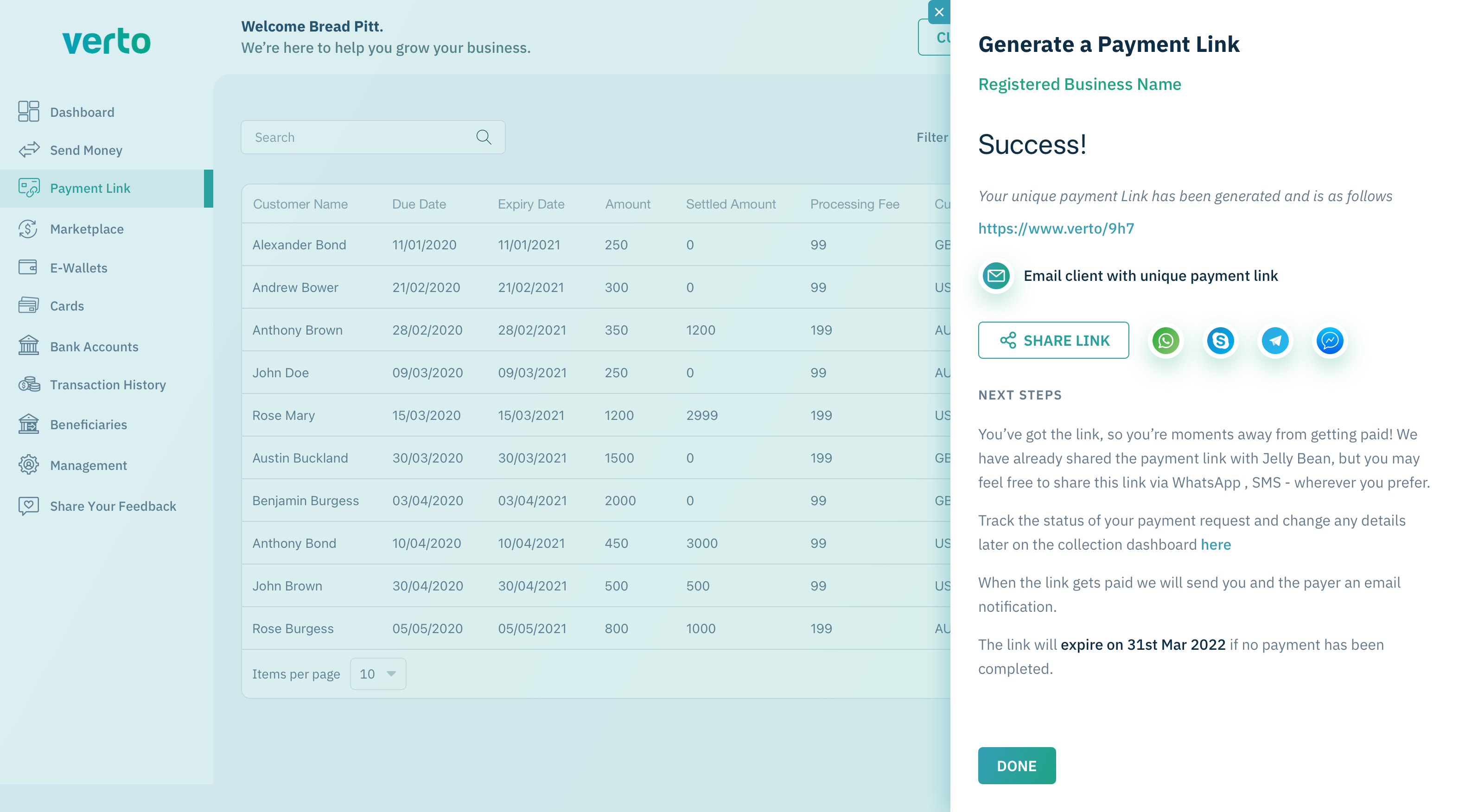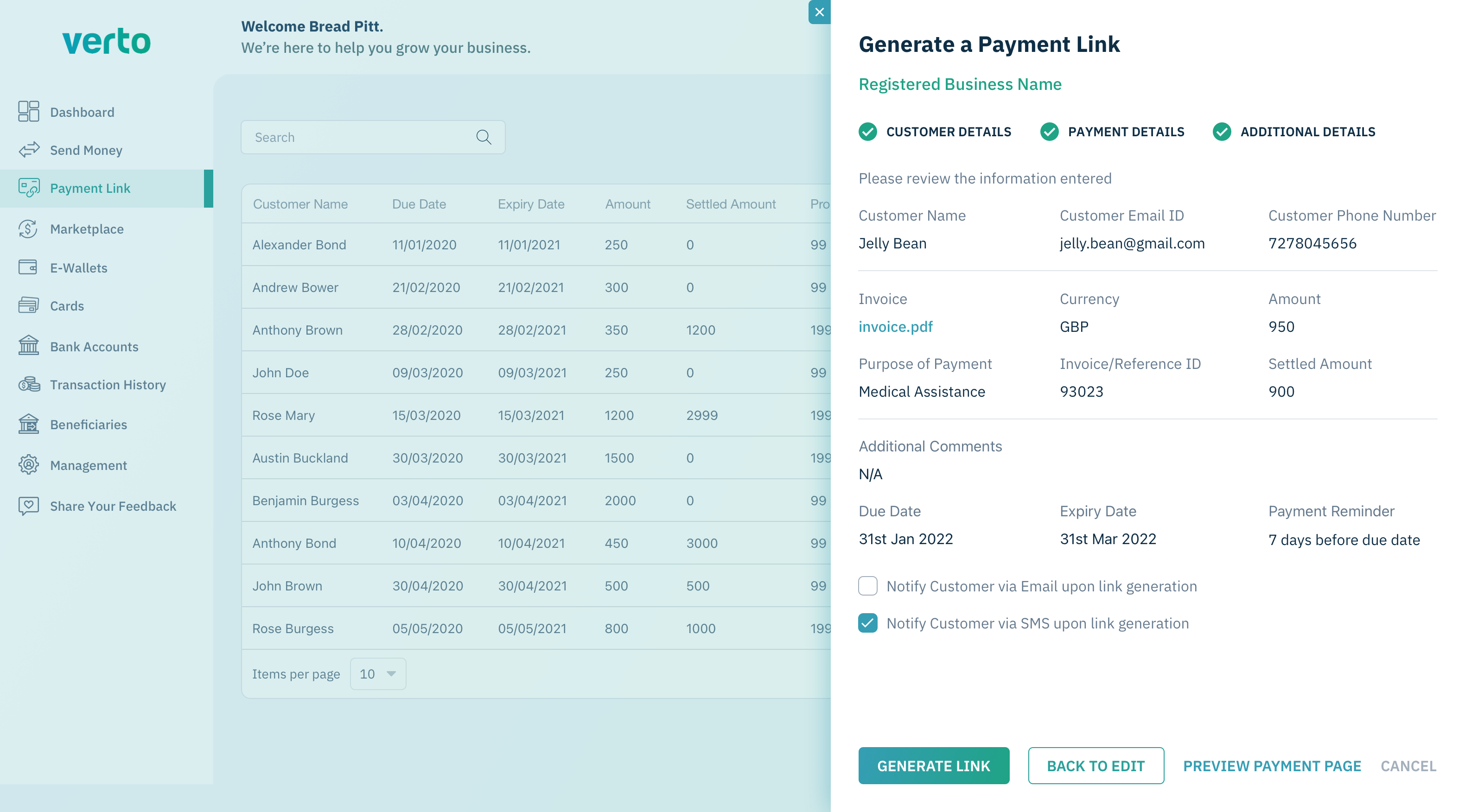 3) Before finalising the payment link, take a moment to review. Our interface presents all the entered information in a clear and organised manner. Confirm accuracy with a quick glance, ensuring that every detail is in place for a smooth payment process.