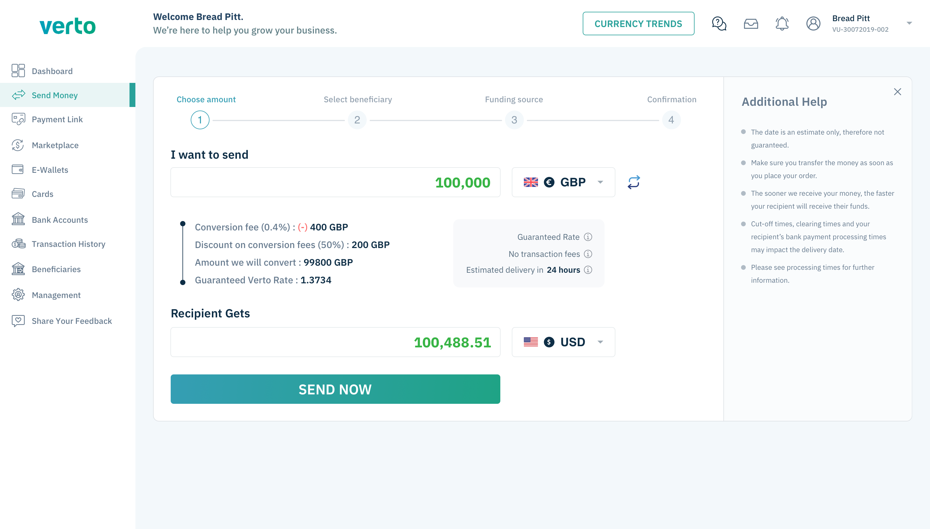 With VertoFX, users can monitor their transactions in real-time, gaining complete visibility into exchange rates and fees, instilling trust and providing a transparent cross-border experience.