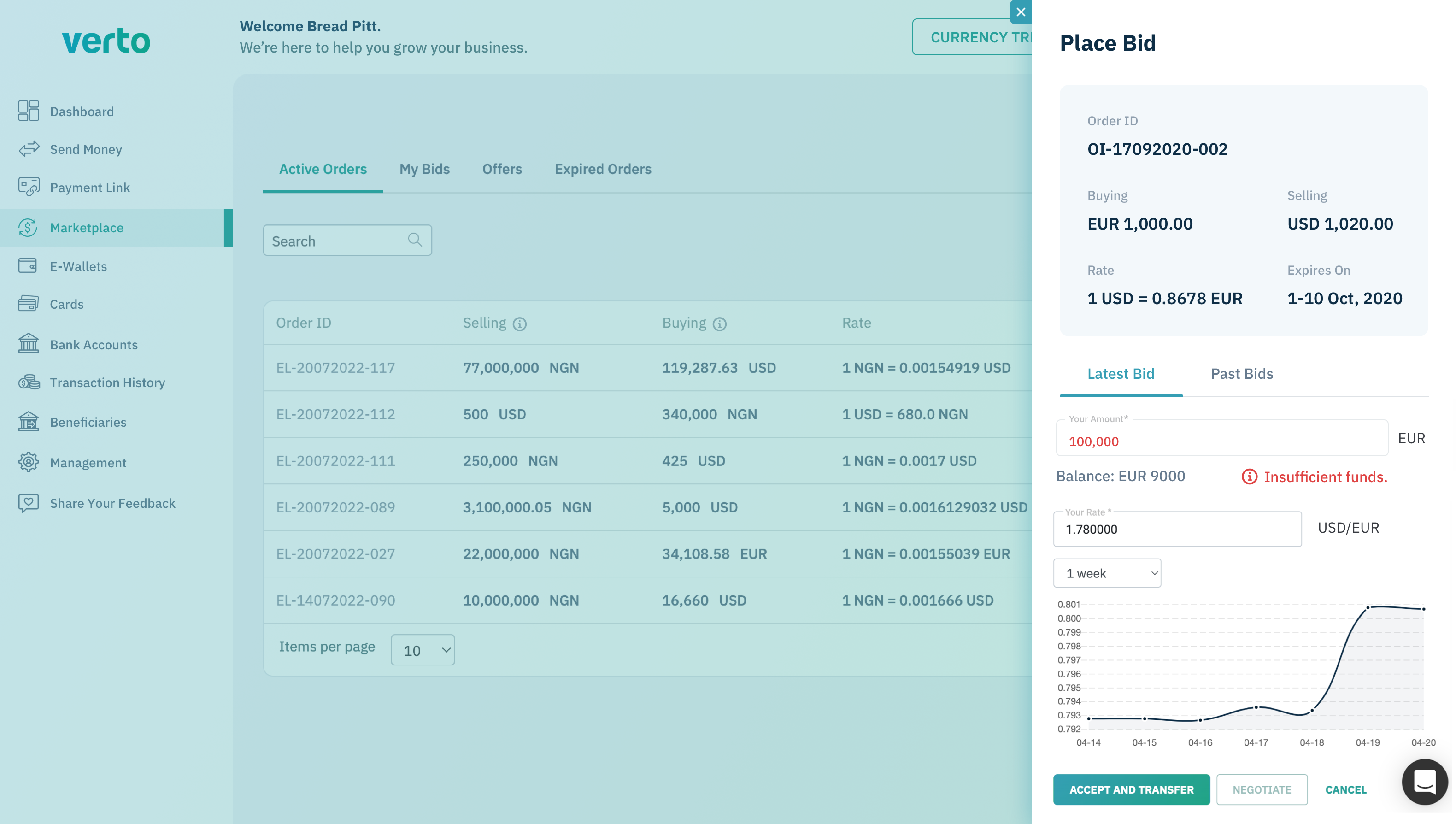 By connecting businesses, liquidity providers, FX brokers, and payment institutions through a unified marketplace, VertoFX offers a streamlined and cost-effective solution for secure international payments. The advanced platform and API enable businesses of all sizes to access enterprise-grade cross-border payment, FX, and banking solutions with ease. With real-time tracking and complete transparency on exchange rates and fees, VertoFX empowers businesses to execute transactions confidently and efficiently.